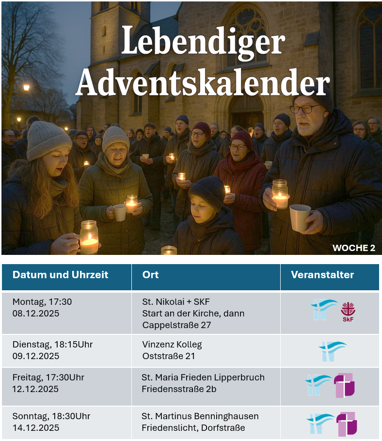 Die Evangelische Kirchengemeinde Lippstadt lädt herzlich ein zur 3. Vespermusik zum Advent. Die Veranstaltung beginnt am Samstag, den 13. Dezember um 17 Uhr in der Marienkirche.